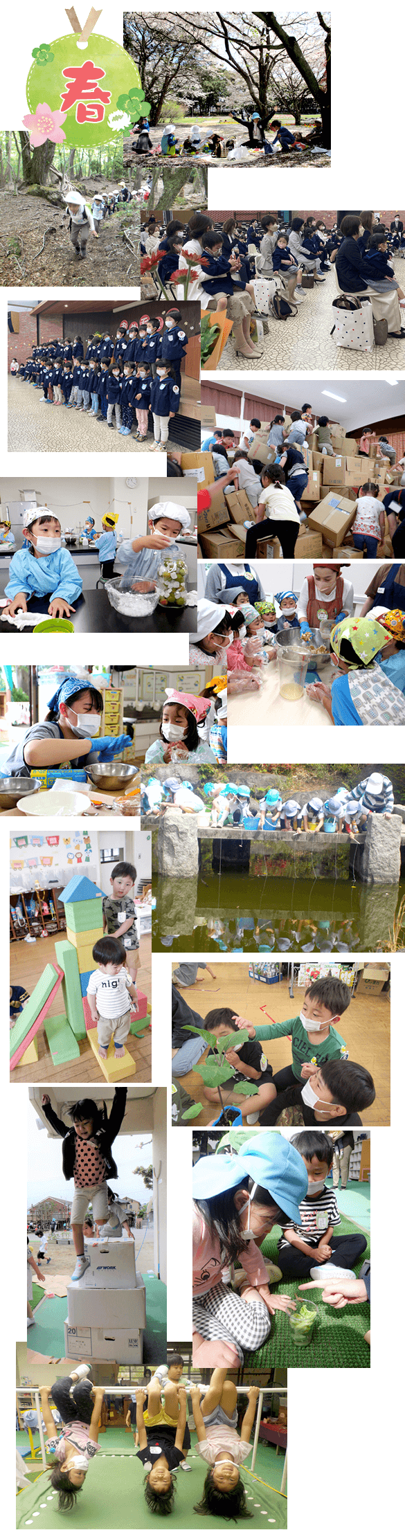 本園では、豊かな環境の中で一人ひとりの子どもと心を通わせながら、感動体験や友達とのかかわりを大切にし、自然に芽生えてくる興味や探究心を引き出し、「幼稚園で遊ぶのが楽しい」と身体も心も思いっきり動かして遊ぶ保育を行っています。